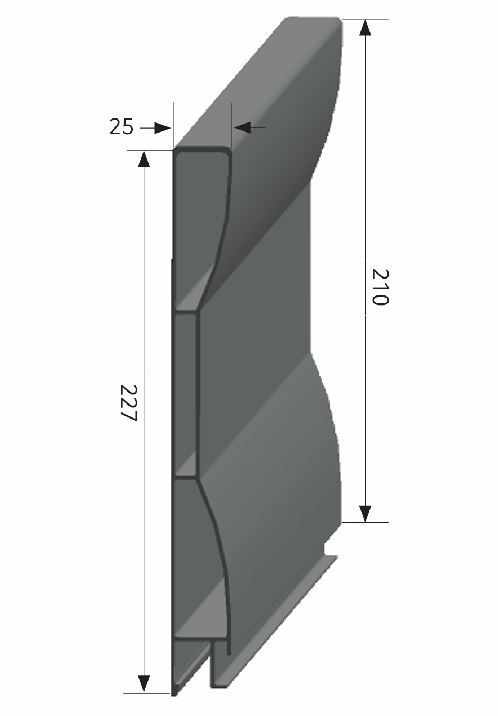 D000515 Perfil aluminio anodizado superior curvado – anch. 25 x alt. 210 x larg. 6500 mm