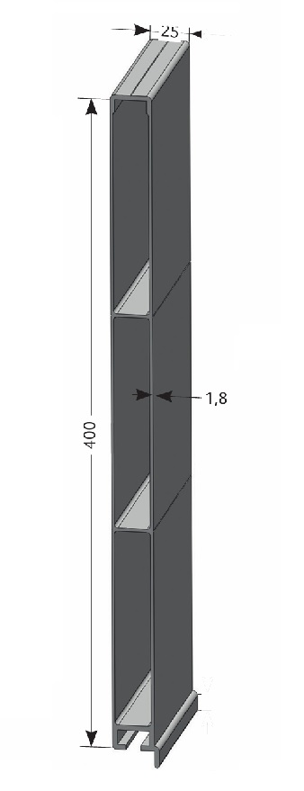 D550021C6500 Perfil para cartola 25 mm liso – aluminio anodizado – 400 mm – 6500 mm