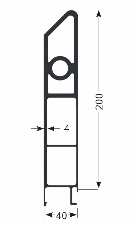 D840072 Perfil inferior para cartola 40 mm – aluminio bruto – 100 mm – 5000 mm