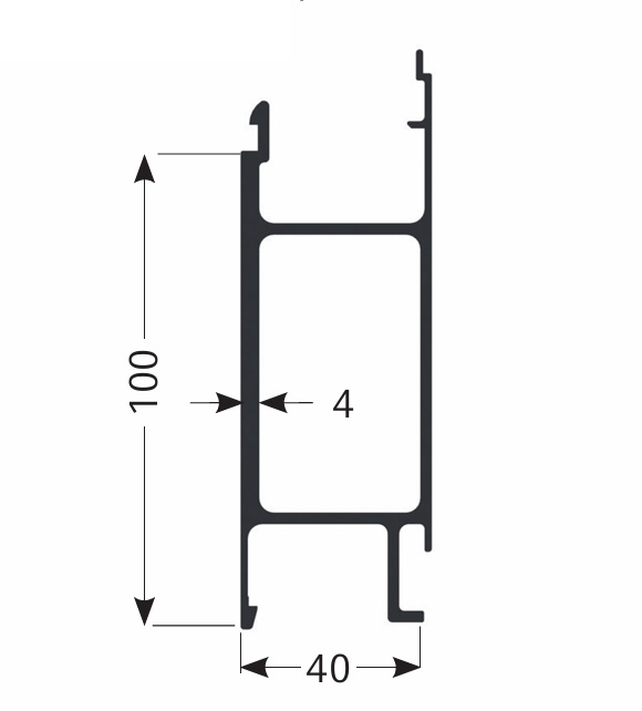 D840074 Perfil intermedio para cartola 40 mm – aluminio bruto – 100 mm – 5000 mm