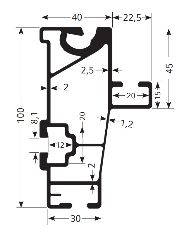 D850010C6000 Perfil de borde lat. de caja abierta – para suelo alu. – 6000 mm