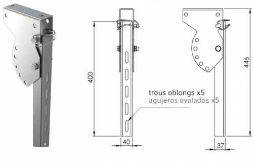 E100018 Soporte articulado acero galv. – alt. : 400 mm / anch. : 40 mm