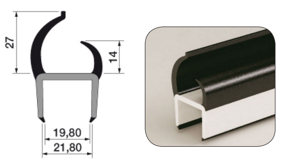 F000011 Junta PVC para puerta de 21 mm – gris/negro – larg. 5000 mm