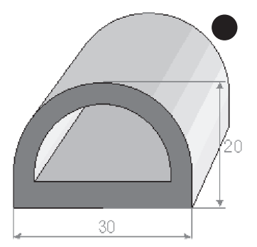 F050135C15 Perfil comp. EPDM negro – shore 70 – 30×20 mm – 15 m