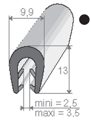 F300010 Perfil clip EPDM negro para esp. 2.5->3.5 mm – 9.9×13 mm – 50 m