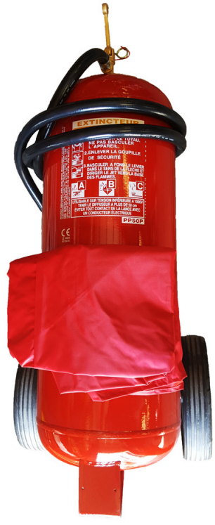 A450181 Porta extintor plástico 6/9 kg negro con tapa roja con vent.