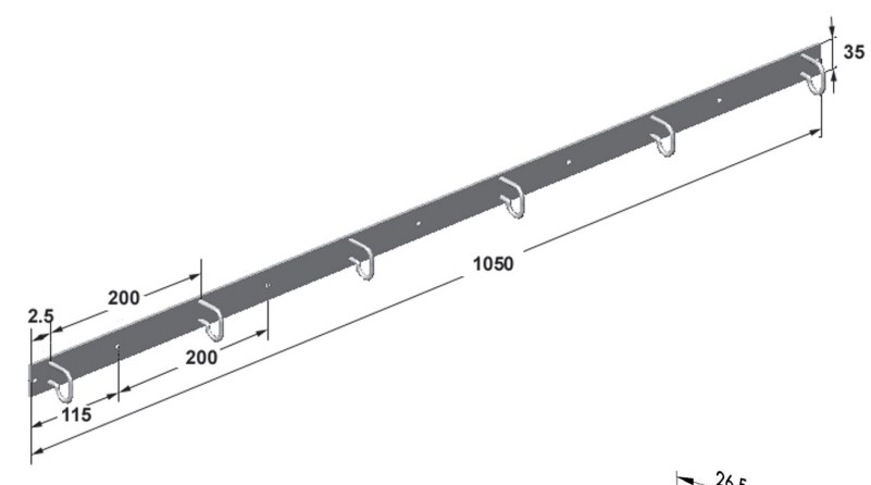 T350092 Barra con puentes de precinto en gancho – larg. 1050 mm